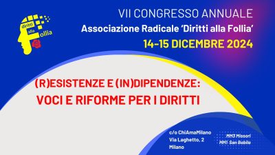 https://dirittiallafollia.it/2024/12/06/vii-congresso-annuale-diritti-alla-follia-resistenze-e-indipendenzevoci-e-riforme-per-i-diritti-milano-14-15-dicembre-2024-comunicato-stampa/